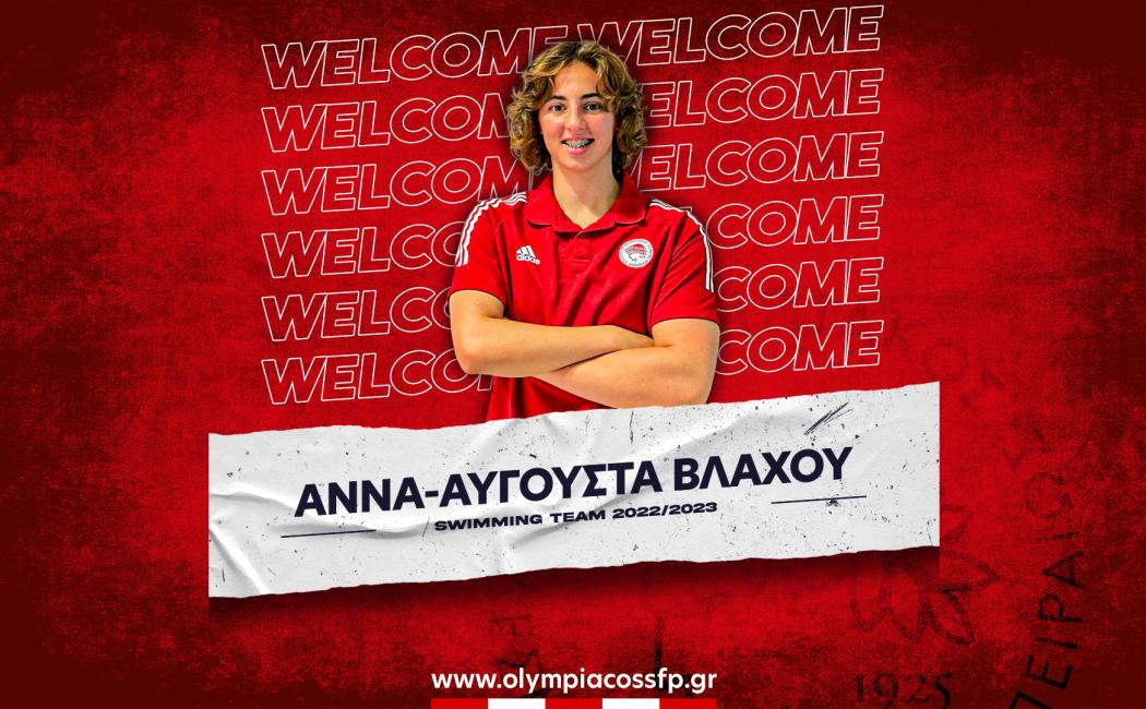 Ο ΟΛΥΜΠΙΑΚΟΣ Σ.Φ.Π. ανακοινώνει την έναρξη της συνεργασίας του με την Άννα Αυγούστα Βλάχου. Η Ελληνίδα αθλήτρια (ημ. γέννησης, 14/02/2005) εντάσσεται στο δυναμικό του αγωνιστικού τμήματος κολύμβησης του Συλλόγου.