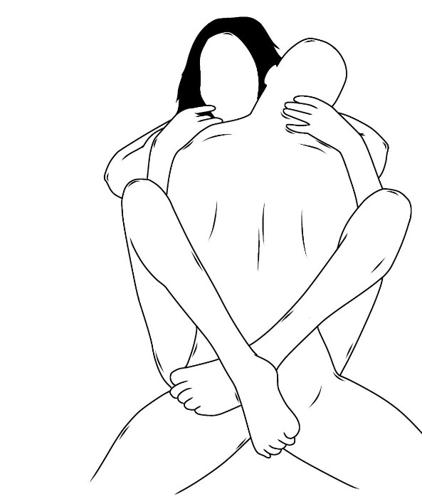 Ξαπλώστε και αγκαλιαστείτε κανονικά πρόσωπο με πρόσωπο, ενώ ένας από τους δύο θα πλέξει τα πόδια του γύρω από τον άλλον.