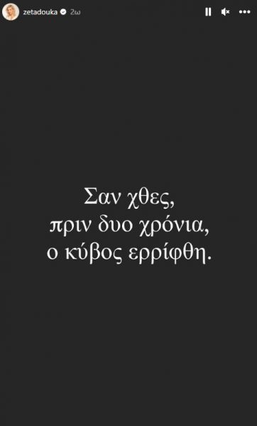 «Σαν χθες, πριν από δυο χρόνια, ο κύβος ερρίφθη». έγραψε η Ζέτα Δούκα σε story της στο Instagram.