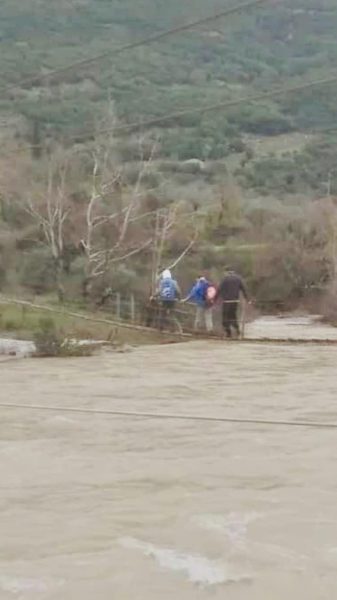 Θέρμο: Μαθητές πέρασαν από το «φουσκωμένο» ποτάμι διασχίζοντας αυτοσχέδια γέφυρα