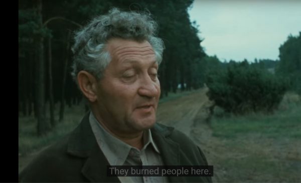 Σε μία από τις πρώτες σκηνές του μνημειώδους ντοκιμαντέρ Shoah του Claude Lanzmann, o Simon Srebnik, ένας από τους ελάχιστους επιζώντες του στρατοπέδου του Chelmno, περπατά μέσα σε ένα όμορφο, ειδυλλιακό σχεδόν, δασικό τοπίο, κοντοστέκεται κοιτάζοντας προς τη μεριά ενός ξέφωτου και με την παράξενη απάθεια του ανθρώπου που έχει κοιτάξει κατάματα το θάνατο, λέει: «Εδώ καίγανε ανθρώπους. Πολλοί άνθρωποι κάηκαν εδώ. Das ist der Platz. Αυτό είναι το μέρος».