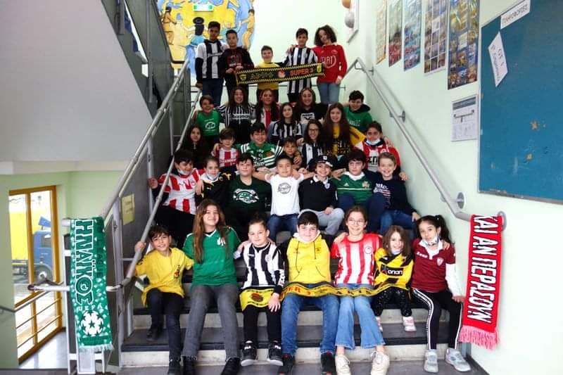 Οι μικροί μαθητές φωτογραφήθηκαν με φανέλες ελληνικών ομάδων.