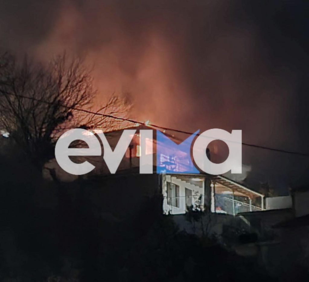 Μεγάλη φωτιά στην Κύμη – Καίγεται ολοσχερώς το σπίτι του πρώην Δημάρχου