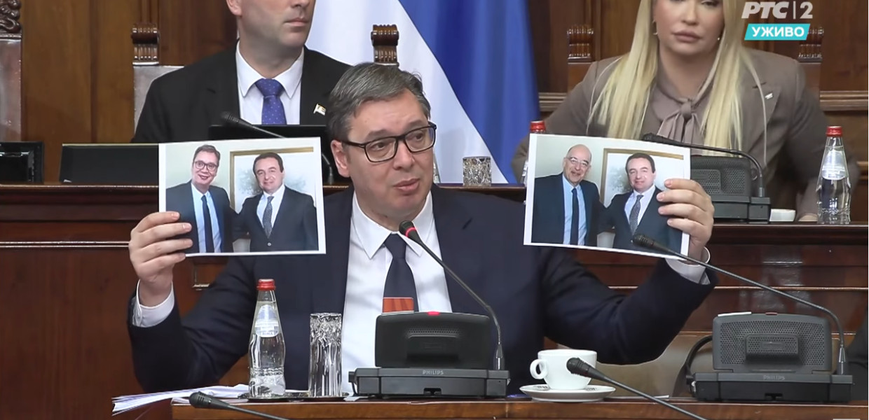 Μια φωτογραφία από τη συνάντηση του Νίκου Δένδια με τον πρωθυπουργό του Κοσόβου Άλμπιν Κούρτι εμφάνισε στη Βουλή ο πρόεδρος της Σερβίας Αλεξάνταρ Βούτσιτς.