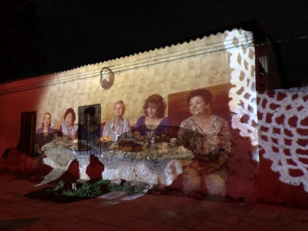 Λίγο πιο κάτω σε ένα σπασμένο τοίχο προβάλλονται κυρίες που συζητούν στη δική τους ρούγα δίπλα σε σεμεδάκια και ελληνικό καφέ, μπροστά τους πολίτες πιάνουν το χορό με κάθε ευκαιρία και μέλη ποντιακών συλλογών ξεπηδούν από τα παράθυρα και τραγουδούν τον δικό τους καημό.