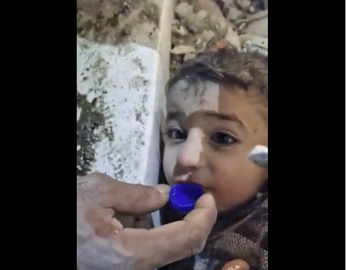 «Τουρκική ομάδα έρευνας και διάσωσης προσπαθεί να βοηθήσει και να δώσει νερό σε ένα μικρό αγόρι από τη Συρία (Mohammad) που εγκλωβίστηκε κάτω από τα ερείπια στην Αντιόχεια της Τουρκίας».