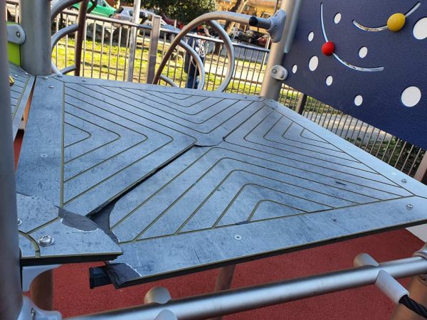 «Δυστυχώς χθες το βράδυ βάνδαλοι κατέστρεψαν παιχνίδια από την νέα παιδική χαρά στην πλατεία Περιστεριών, η οποία παραδόθηκε πριν λίγες ημέρες!