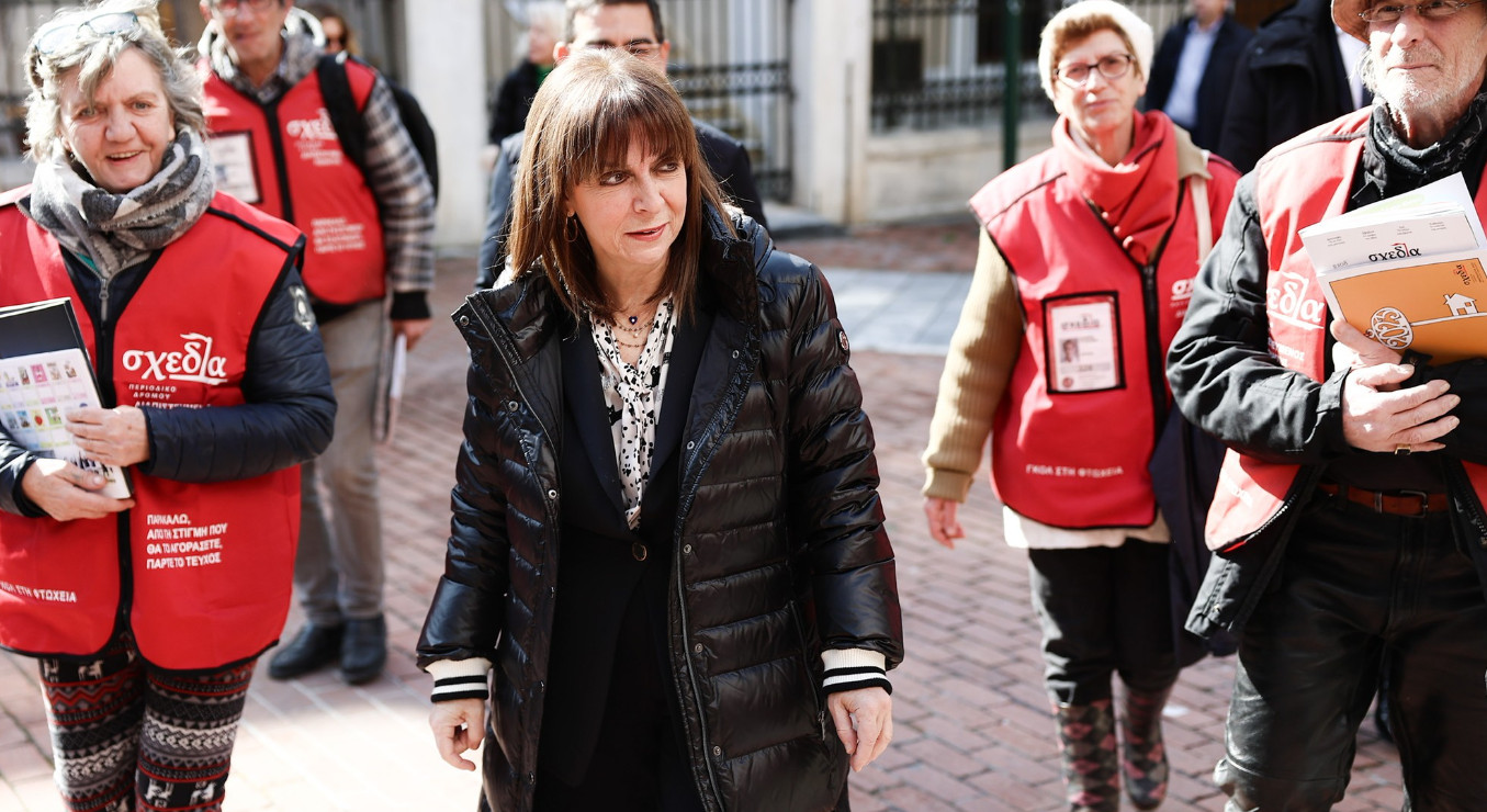Με αφορμή τη συμπλήρωση 10 χρόνων κυκλοφορίας του περιοδικού δρόμου «σχεδία», η Πρόεδρος της Δημοκρατίας, Κατερίνα Σακελλαροπούλου, συναντήθηκε σήμερα με πωλητές του στην πλατεία της Αγίας Ειρήνης.