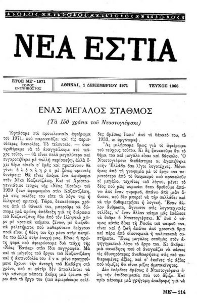 *Αποσπάσματα από κείμενο του λογοτέχνη και ακαδημαϊκού Τάσου Αθανασιάδη (1913-2006), που είχε συνταχθεί τον Οκτώβριο του 1971 και έφερε τον τίτλο «Η υπερκαιρικότητα του Ντοστογιέφσκι». Είχε δημοσιευτεί στο περιοδικό «Νέα Εστία», στο τεύχος υπ’ αριθμόν 1066 (τόμος ενενηκοστός, 1η Δεκεμβρίου 1971), το οποίο ήταν αφιερωμένο στον Φιόντορ Ντοστογιέφσκι, με αφορμή τη συμπλήρωση 150 ετών από τη γέννησή του.