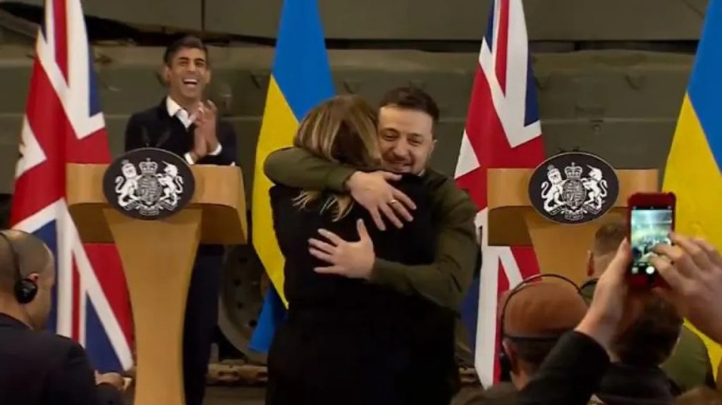 In a surprise move President Zelensky hugs a journalist from BBC Ukraine during his press conference with Rishi Sunak.pic.twitter.com/JFkngB267f