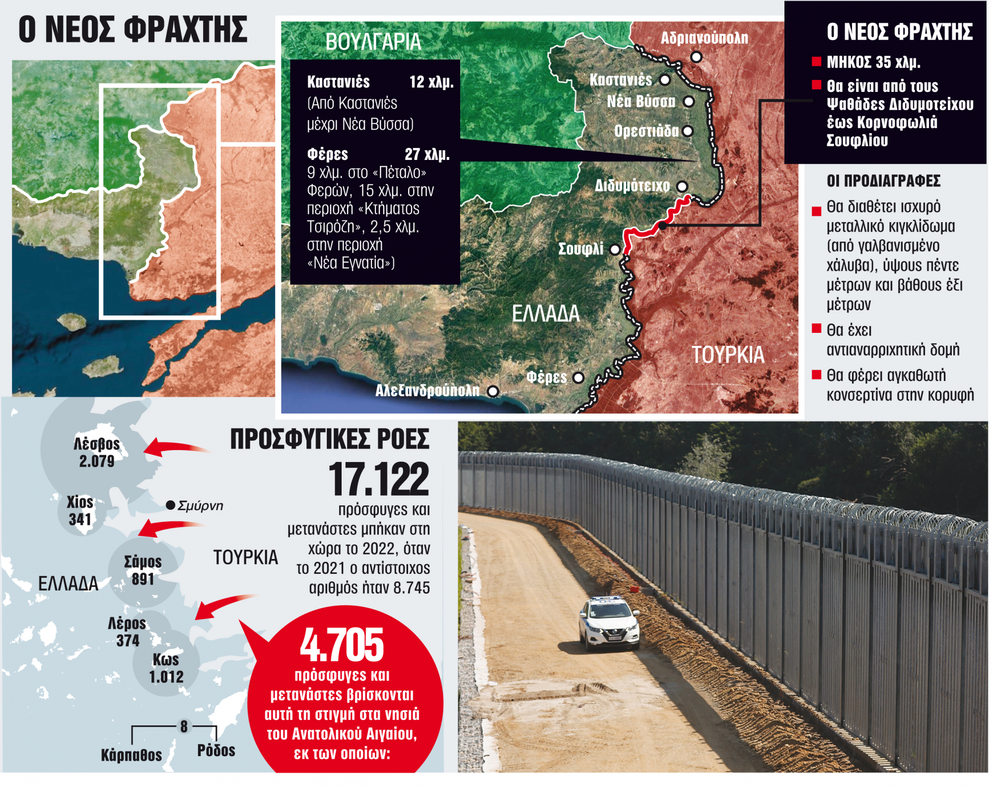 Σε κάθε περίπτωση η κυβέρνηση δεν φρενάρει τον υπάρχοντα σχεδιασμό της για την επέκταση του φράχτη στον Εβρου, σε πρώτη φάση σε τμήμα μήκους 35 χιλιομέτρων (από τα συνολικά 140 χλμ.) ανάμεσα στον οικισμό «Ψαθάδες» Διδυμοτείχου έως την Κορνοφωλιά Σουφλίου.