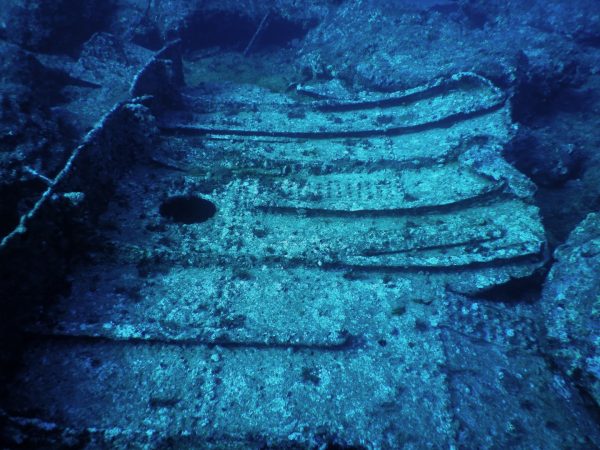 Ο ατμολέβητας, η «καρδιά» του πλοίου, σε άριστη κατάσταση, ξεχωρίζει στον βυθό σε όρθια θέση