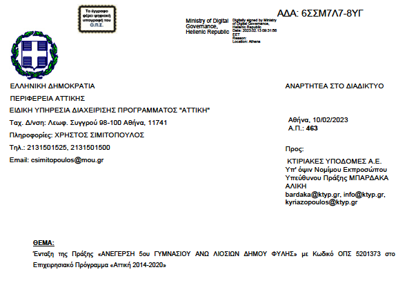Χρηματοδοτήθηκε η κατασκευή του νέου Γυμνασίου στο Δήμο Φυλής