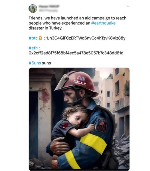 Τον φονικό σεισμό που έπληξε την Τουρκία και την Συρία εκμεταλλεύονται απατεώνες, αναρτώντας δημοφιλείς φωτογραφίες και βίντεο για να συγκινήσουν τους χρήστες στα κοινωνικά δίκτυα και να τους αποσπάσουν χρήματα.