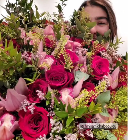 Συγκεκριμένα, ο Λεωνίδας Κουτσόπουλος δημοσίευσε μια φωτογραφία της αγαπημένης του Χρύσας Μιχαλοπούλου στην οποία τη βλέπουμε να ποζάρει με ένα τεράστιο χαμόγελο πίσω από μια πελώρια ανθοδέσμη.