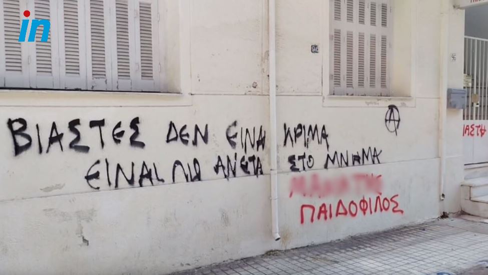Όπως φαίνεται και στις φωτογραφίες του in, έγραψαν τις λέξεις «βιαστής» και «παιδόφιλος».