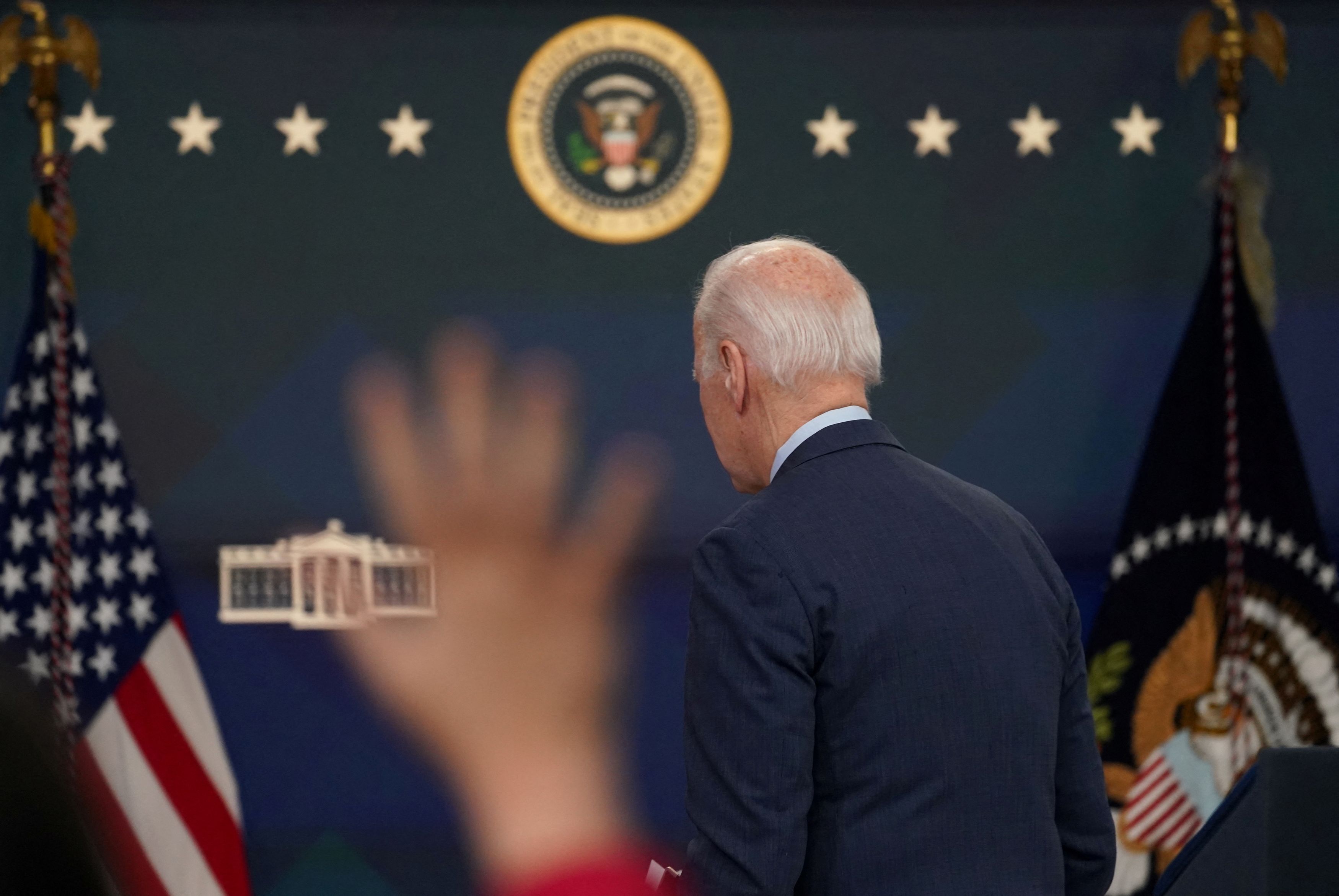 Ο Τζο Μπάιντεν αφού τελείωσε το διάγγελμά του γύρισε την πλάτη και έφυγε ωστόσο οι δημοσιογράφοι φώναζαν επίμονα όλοι μαζί για ερωτήσεις. Έτσι ο Αμερικανός πρόεδρος επέστρεψε και στάθηκε λίγο μπροστά τους.