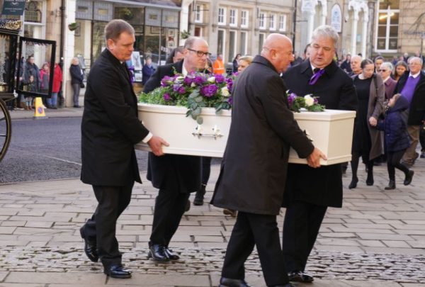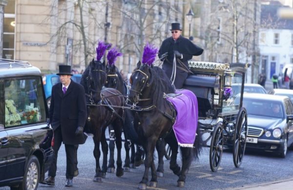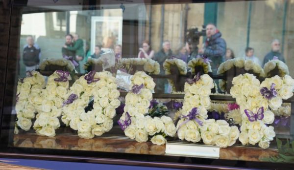 Μια νεκροφόρα μετέφερε λουλούδια που έγραφαν «κόρη» στο αβαείο του Χεξάμ όπου πραγματοποιήθηκε η τελετή.