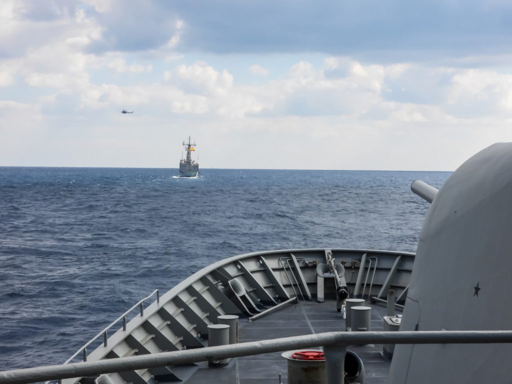 Συνεκπαίδευση PASSEX (Passing Exercise) της φρεγάτας ΣΑΛΑΜΙΣ με τις ισπανικές φρεγάτες ESPS SANTA MARIA και ESPS REINA SOFIA πραγματοποιήθηκε την Πέμπτη στην ευρύτερη θαλάσσια περιοχή του Κρητικού Πελάγους.