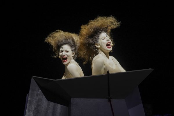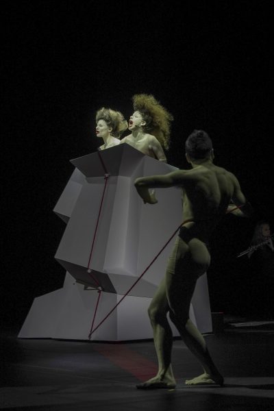 Αντί για ένα στόμα, δυο σώματα σε φωνητική και κινητική αντίστιξη, δυο φωνές από τον ίδιο πυρήνα αναβλύζουν την μπεκετική άβυσσο, η οποία παραμένει συμπυκνωμένη αλλά, αντί για μια στιγμή, καταλαμβάνει έναν χώρο άχρονο, με την ορχήστρα να προσφέρει σε αυτόν παλμό χωρίς πορεία, ήχο χωρίς αιτία, βάθος χωρίς όρια.