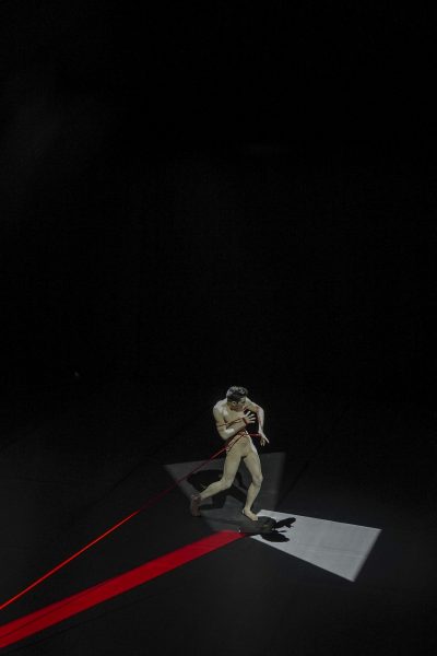 Στην αυθεντική εκτέλεση, έχουμε ένα στόμα και μια σιωπηλή φιγούρα-ακροατή μέσα στο απόλυτο σκοτάδι, την απόλυτη άβυσσο, το πουθενά· στη δική μας κατάθεση, κρατάμε τη συνθήκη ως έχει, όχι στην επιφάνεια αλλά στον πυρήνα της. Αυτό που αλλάζει μέσα από τη μουσικοθεατρική, τη σωματική και τη δραματουργική δουλειά είναι ο χώρος που περιβάλλει αυτή τη συνθήκη, καθώς στην προσπάθεια να αφουγκραστούμε τον Μπέκετ αναπόφευκτα –αλλά και μάταια– ο χώρος αυτός αποκαλύπτει τις πολλαπλές του διαστάσεις».