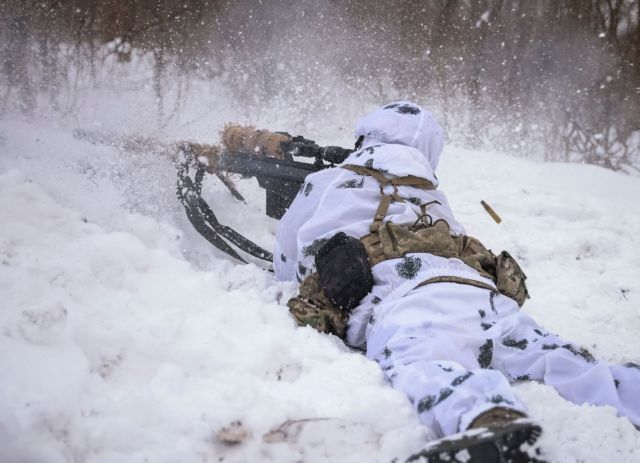 Μια πρώτη ομάδα 635 στρατιωτών της Ουκρανίας ολοκλήρωσε εκπαίδευση πέντε εβδομάδων σε αμερικανική βάση στη Γερμανία, ανακοίνωσε χθες Παρασκευή το υπουργείο Αμυνας των ΗΠΑ (στη φωτογραφία αρχείου του Reuters/Yevhen Titov, επάνω, ουκρανός ελεύθερος σκοπευτής στην πρώτη γραμμή των μαχών της Μπαχμούτ).