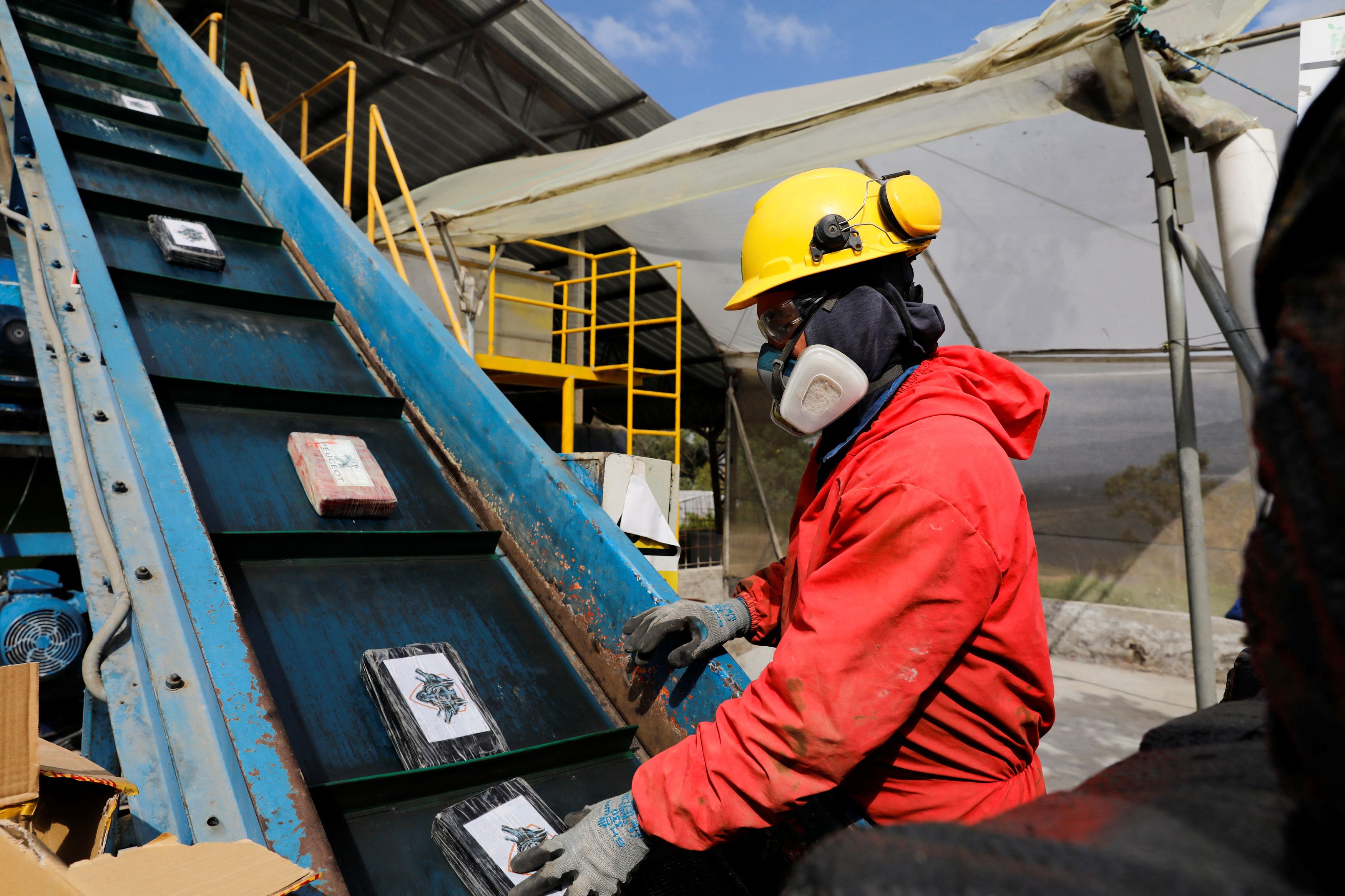 Κυλιόμενος ιμάντας ανεβάζει τις συσκευασίες κοκαΐνης στο μηχάνημα κονιορτοποίησης (Reuters)