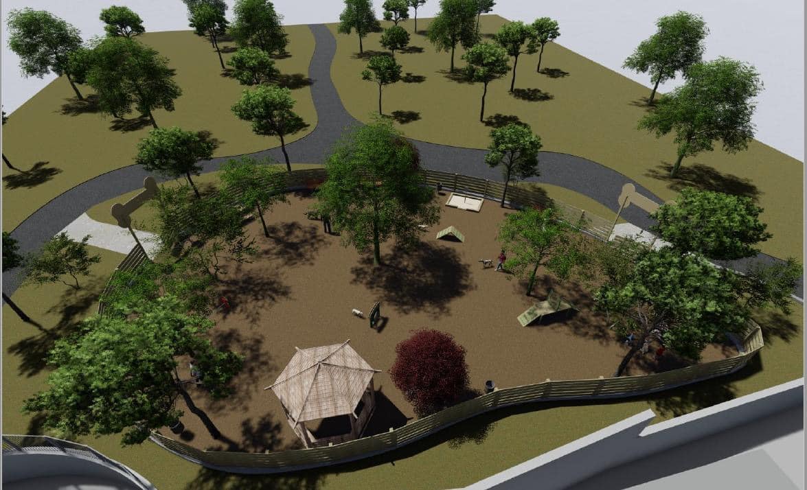 Σε έναν ειδικά διαμορφωμένο χώρο θα εγκατασταθούν ξύλινες κατασκευές για παιχνίδια (ανάβαση, κατάβαση, ισορροπία) και θα δημιουργηθεί ένας μεγάλος χώρος παιχνιδιού, άσκησης και εκτόνωσης για τους τετράποδους φίλους μας.