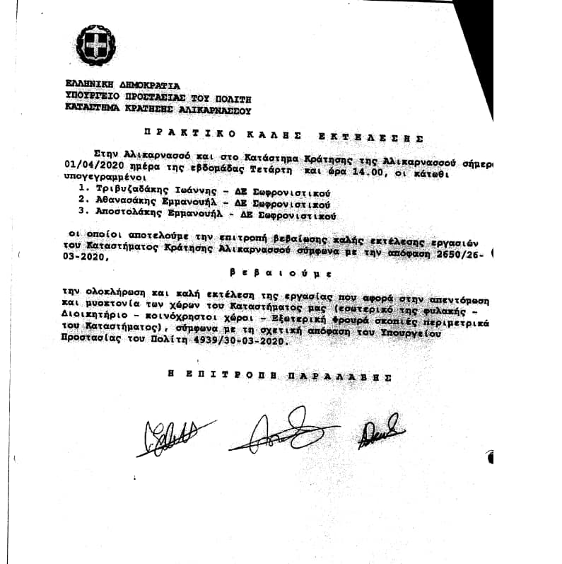 Η παραπάνω πρόταση που αποδίδεται εξ’ ολοκλήρου στο «πόρισμα» του ΣΔΟΕ είναι απολύτως ψευδής, καθώς η Γενική Γραμματεία Αντεγκληματικής Πολιτικής έχει για κάθε απολύμανση έγγραφα ορθής εκτέλεσης της υπηρεσίας, τα οποία μάλιστα έχουν κατατεθεί και στη Βουλή κατά τον Κοινοβουλευτικό Έλεγχο που έγινε, ως εκ τούτου είναι δημόσια έγγραφα που μπορεί να βρει ο οποιοσδήποτε.