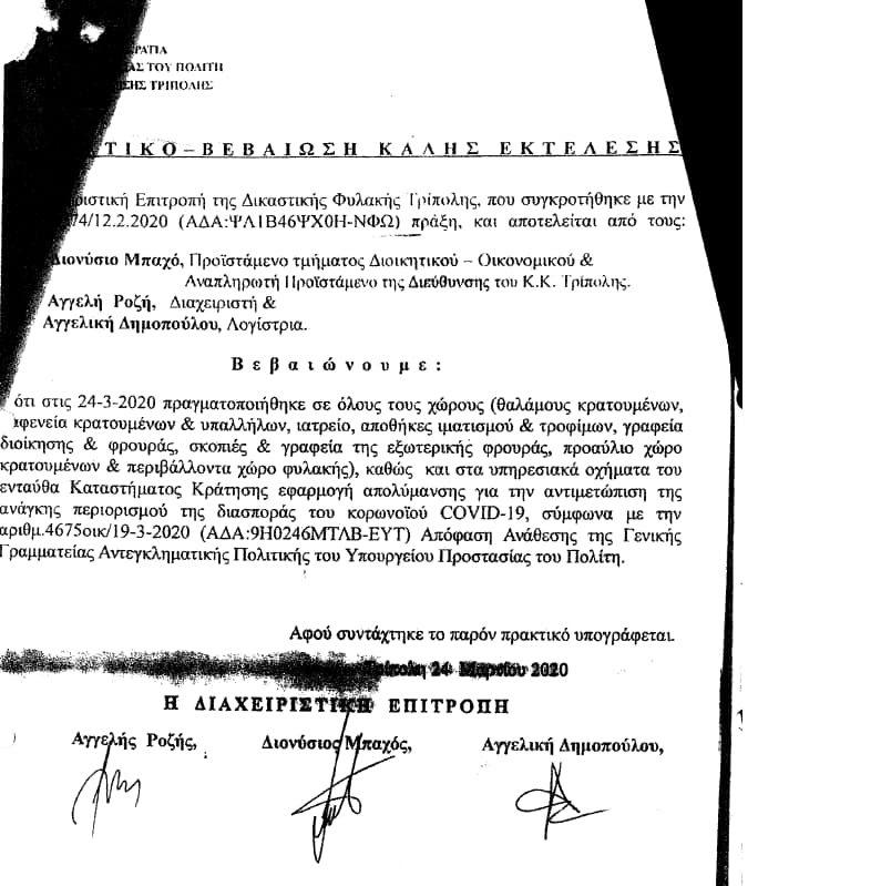 ”… όπως διαπίστωσαν οι ελεγκτές, οι υπηρεσίες αυτές «ουδέποτε εκτελέστηκαν». Είναι χαρακτηριστικό ότι «από τα πρακτικά παραλαβής – βεβαίωσης εκτέλεσης εργασιών» του υπουργείου Προστασίας του Πολίτη «δεν προκύπτει καμία αναφορά» για την «παροχή οποιουδήποτε έργου στα καταστήματα κράτησης της χώρας».