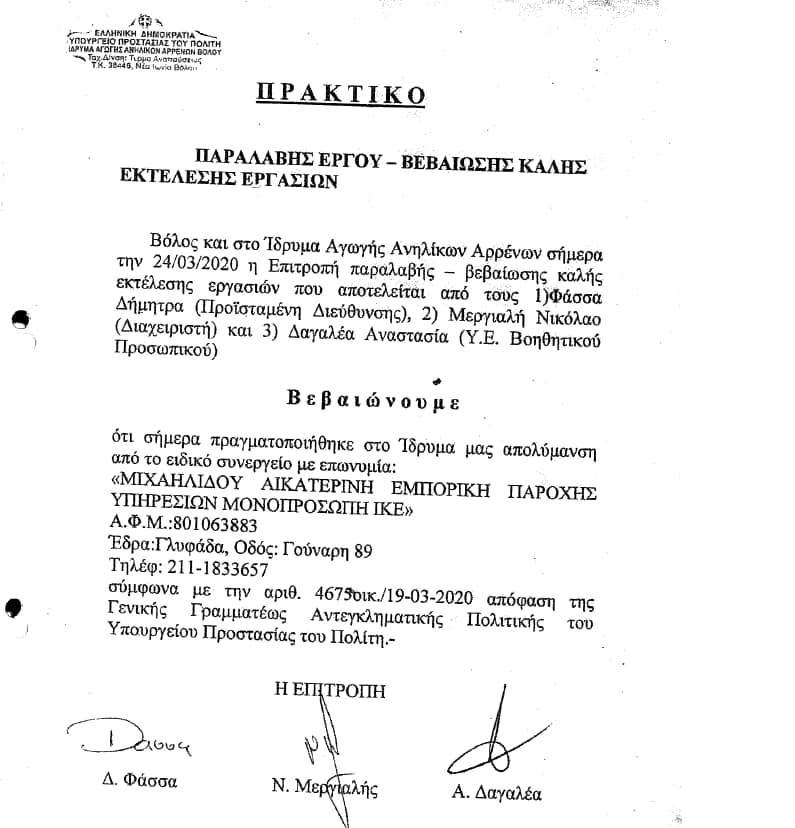 Συνημμένα σας παραθέτουμε τα σχετικά έγγραφα που αποδεικνύουν ότι οι απολυμάνσεις έγιναν και άρα το «πόρισμα» που παρουσιάζεται στην εφημερίδα Documento λέει ψέματα.