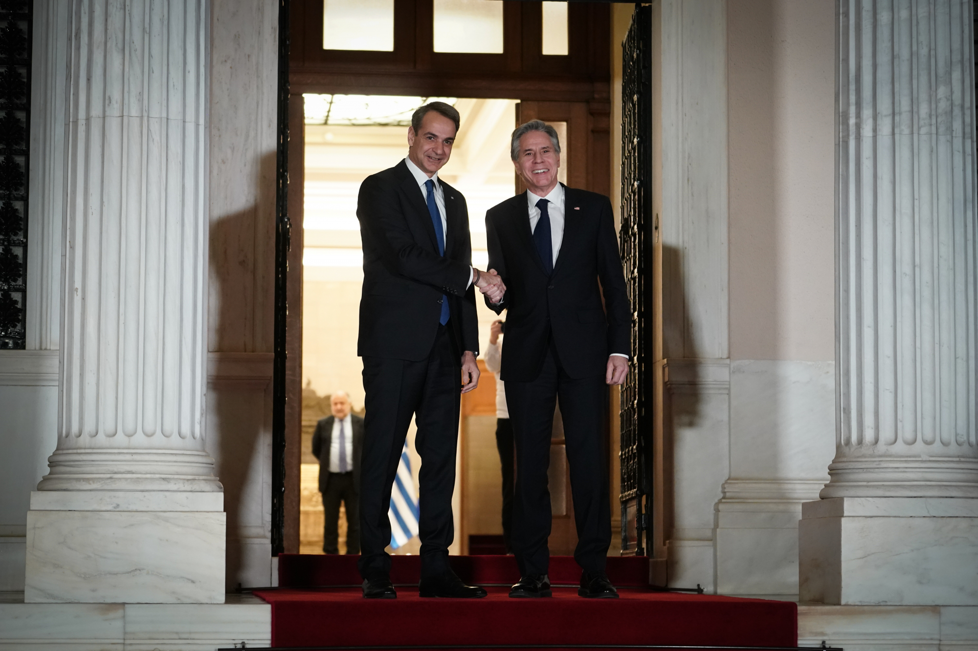 Κατά τον διάλογο που είχαν και οι δύο μπροστά στις κάμερες ο πρωθυπουργός καλωσόρισε τον Αμερικανό ΥΠΕΞ επισημαίνοντας τη βοήθεια που έχει προσφέρει η Ελλάδα στην Ουκρανία, μετά τη ρωσική εισβολή.