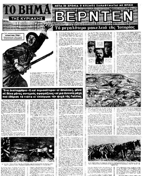 *Αποσπάσματα από κείμενο του διακεκριμένου βρετανού στρατιωτικού συγγραφέα και δημοσιογράφου σερ Άλιστερ Χορν (Alistair Allan Horne, 1925-2017) για τη Μάχη του Βερντέν, που είχε δημοσιευτεί στην εφημερίδα «Το Βήμα της Κυριακής» στις 6 Μαρτίου 1966.