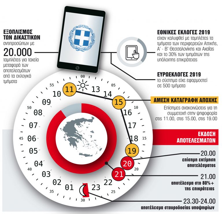Με τη βοήθεια 20.000 τάμπλετ που θα σταλούν φέτος στα εκλογικά τμήματα αναμένεται να υπάρχει σαφές αποτέλεσμα στο 80%+ της επικράτειας από τις 21.00-21.30