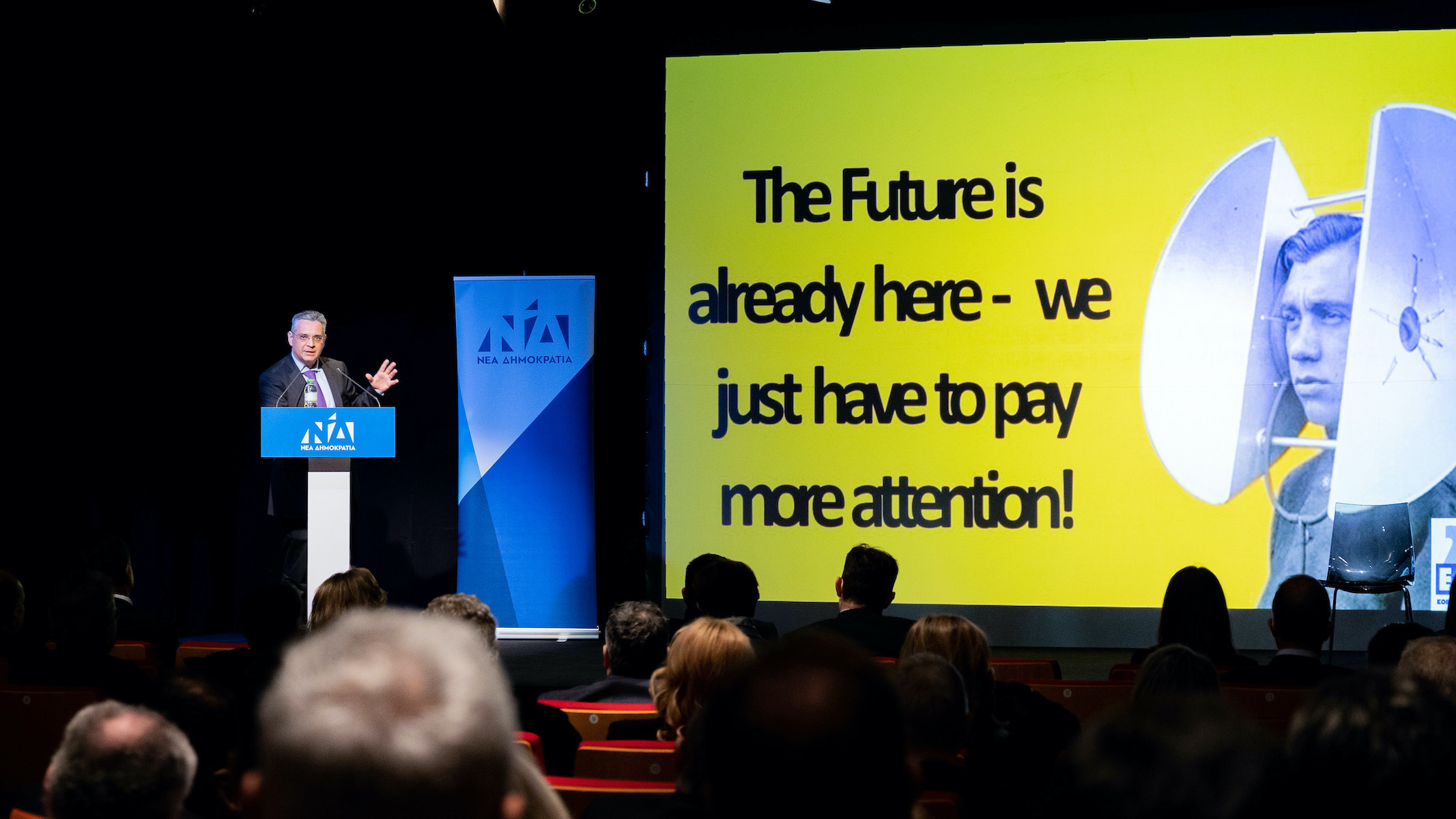 H προοπτική για την Ελλάδα του 2035 και οι πολιτικές οι οποίες θα συνδέσουν την καινοτομία και την τεχνολογία για να διαμορφώσουν την οικονομική και κοινωνική πραγματικότητα σε εκδήλωση της ΝΔ.