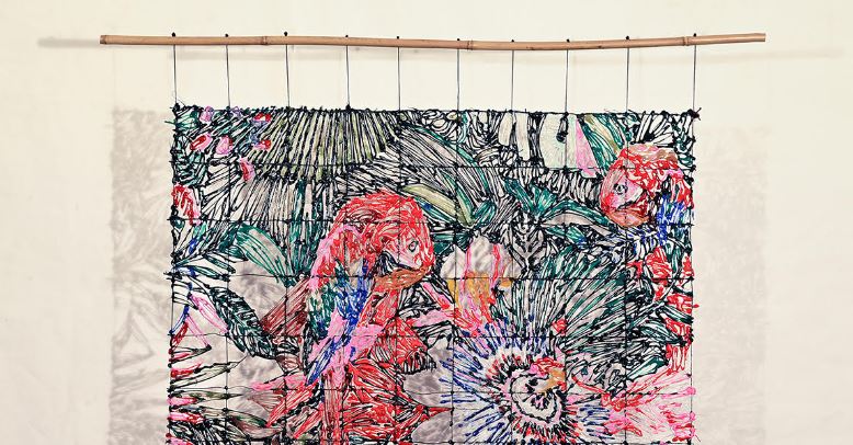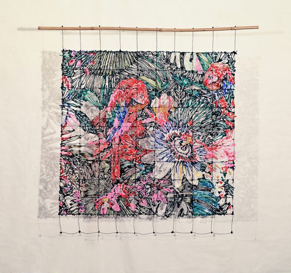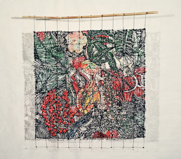 Georgia Damopoulou, Secret Garden, 2022, resin, thread, reed, 115×115 cm