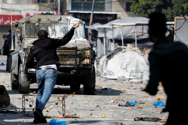 Οι εκτοξεύσεις των ρουκετών ακολουθούν έφοδο χθες Τετάρτη του ισραηλινού στρατού στη Νάμπλους, κατά τη διάρκεια της οποίας έχασαν τη ζωή τους 11 Παλαιστίνιοι, ανάμεσά τους 16χρονος έφηβος, και τραυματίστηκαν από σφαίρες άλλοι 80 (φωτογραφία του Reuters/Raneen Sawafta, επάνω, από την πολύνεκρη έφοδο του ισραηλινού στρατού στη Νάμπλους ).