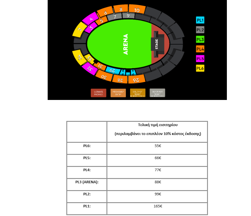 Εισιτήριο καθήμενων στην PL2 κατηγορία, για να δείτε ζωντανά τους Guns N’ Roses, • Merchandise αποκλειστικά σχεδιασμένο για τους κατόχους εισιτηρίων του VIP πακέτου. • Αποκτήστε το laminate και το lanyard της περιοδείας των Guns N’Roses. • Ξεχωριστό προσωπικό εξυπηρέτησης για το συγκεκριμένο συναυλιακό τμήμα και ειδικό σημείο παραλαβής του merchandise.