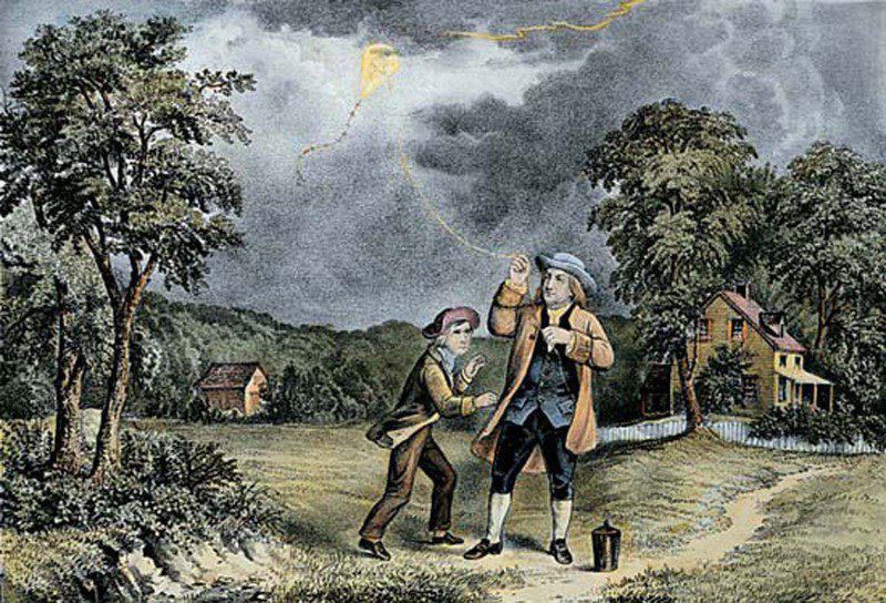 Μια μέρα με καταιγίδα ανέβασε τον χαρταετό ψηλά, το σκοινί ήταν βρεγμένο και επειδή ήξερε πόσο επικίνδυνο ήταν το εγχείρημά του, κρατούσε την άκρη με μια στεγνή μεταξωτή κορδέλα. Στο σκοινί είχε δέσει ένα κλειδί, το οποίο συγκέντρωνε τα ηλεκτρικά φορτία της ατμόσφαιρας και αγγίζοντάς το ηλεκτριζόταν.