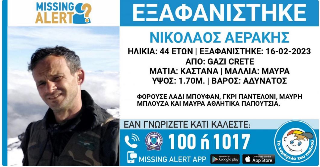 Ο άνδρας εξαφανίστηκε στις 16/02/2023 στις 19:00 από την περιοχή του Γαζίου του Δήμου Μαλεβιζίου και το «Χαμόγελο του Παιδιού» ενημερώθηκε για την εξαφάνιση του στις 19/02. Στη συνέχεια προχώρησε στη δημοσιοποίηση των στοιχείων του, κατόπιν εισαγγελικής εντολής και αιτήματος της οικογένειάς του, καθώς ενδέχεται να συντρέχουν λόγοι οι οποίοι θέτουν τη ζωή του σε κίνδυνο.