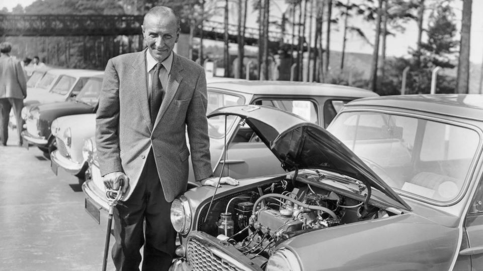 Συγκεκριμένα, όταν βρισκόταν στη British Motor Corpotation (BMC), η κρίση στο Σουέζ το 1956 προκαλεί άνοδο των τιμών του πετρελαίου και η ανάγκη για ένα μικρό και φθηνό τετραθέσιο αυτοκίνητο είναι απαραίτητη όσο ποτέ. Ετσι, τον Αύγουστο του 1959 παρουσιάζει το Morris Mini Minor ή Mini Cooper, όπως είναι γνωστό στην Ελλάδα, ένα αυτοκίνητο λιτό, χωρίς ραδιόφωνο και αξεσουάρ, καθότι o δημιουργός του πίστευε ότι αποσπούν την προσοχή του οδηγού.