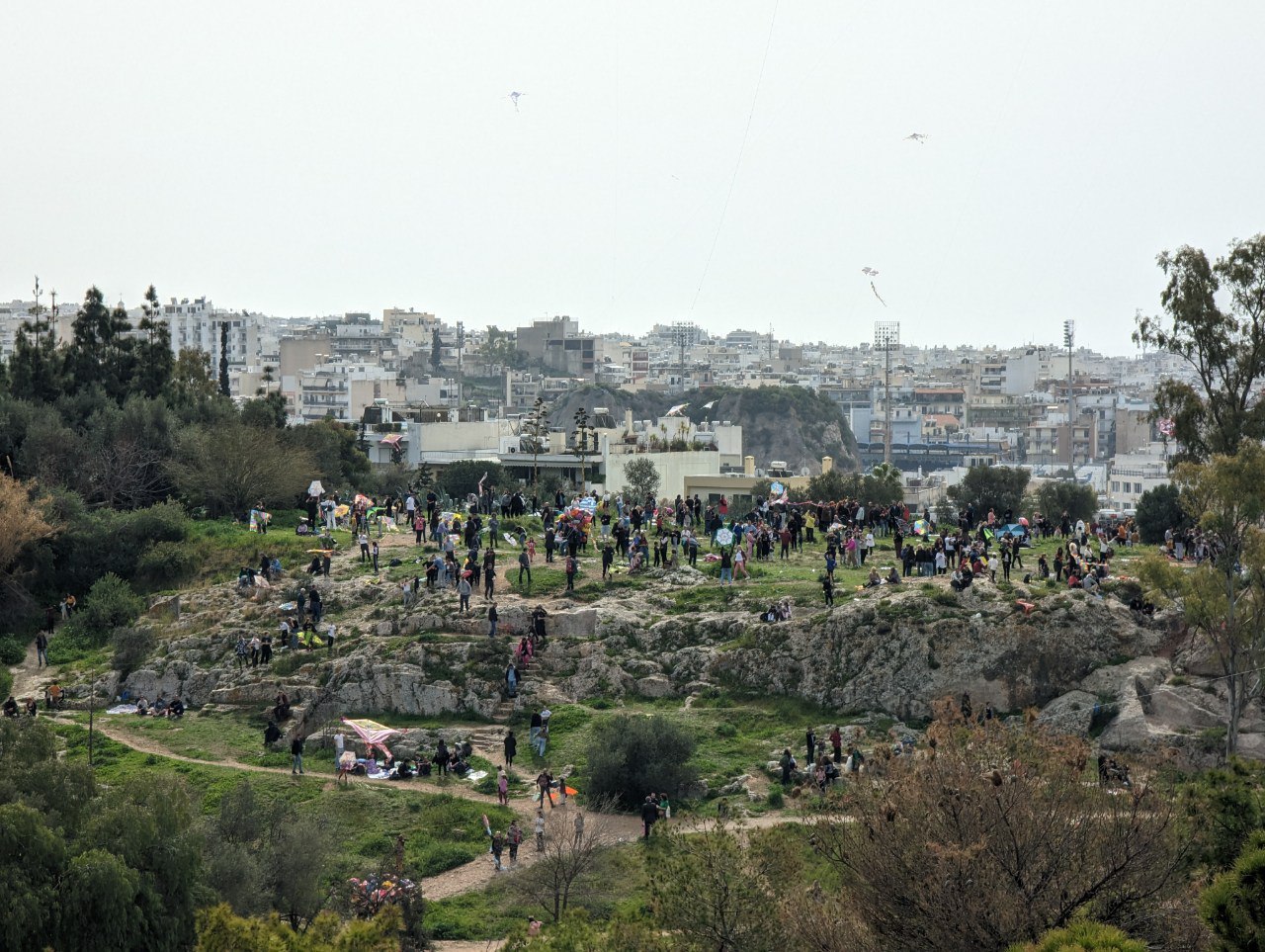 Νηστίσιμα εδέσματα, λαγάνα, ζεστή φασολάδα και ο πατροπαράδοτος χαλβάς θα περιμένουν όσους ανέβουν στον λόφο του Φιλοπάππου που ήδη στον ουρανό του πετούν πολύχρωμοι χαρταετοί και τα χαμόγελα περισσεύουν.