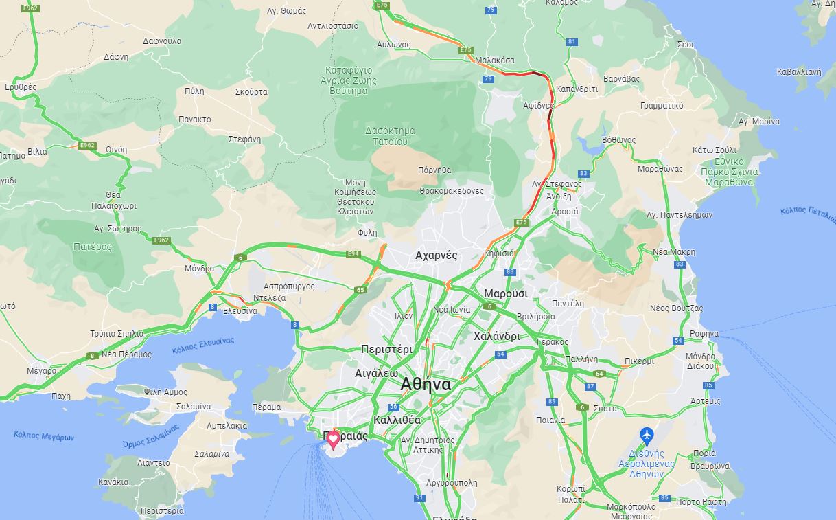Στην Αθηνών – Κορίνθου η κίνηση είναι ιδιαίτερα αυξημένη από τα Μέγαρα έως τα διόδια Ελευσίνας, ενώ στην Αθηνών – Λαμίας παρατηρείται ανάσχεση τουλάχιστον τριών χιλιομέτρων στα διόδια των Αφιδνών.