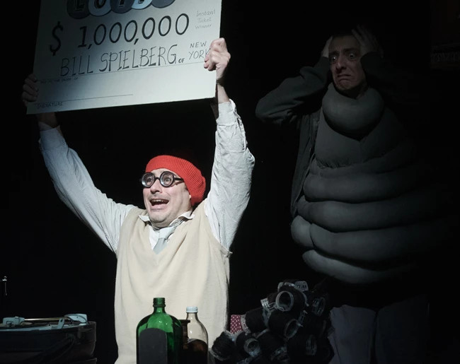Ενδιάμεσα όμως θα μεταμφιεστεί στην μαμά της Λου, στον φανταστικό φίλο του Μπιλ, στον παιδικό έρωτα της Λου, στον ψυχολόγο του Μπιλ, στον ταχυδρόμο της πόλης που μένει η Λου, στην γειτόνισσα του Μπιλ και πάει λέγοντας. Όλα αυτά πάνω στη σκηνή την ώρα της παράστασης. Ο Βασίλης Μαυρογεωργίου είναι απλά φοβερός.