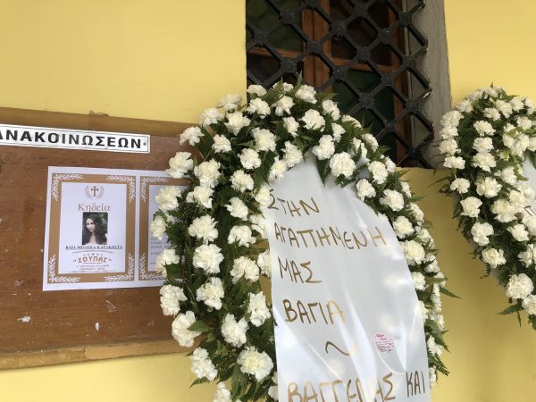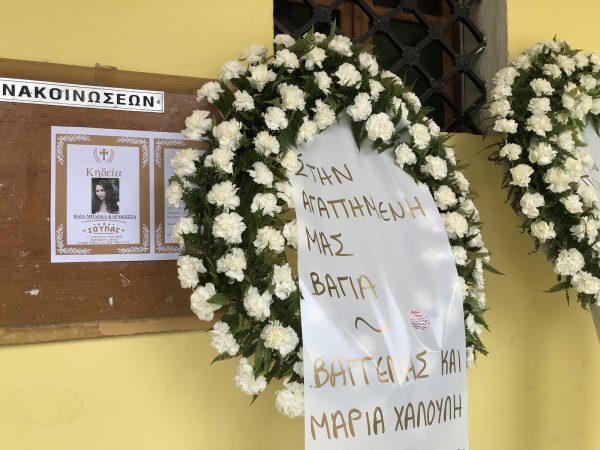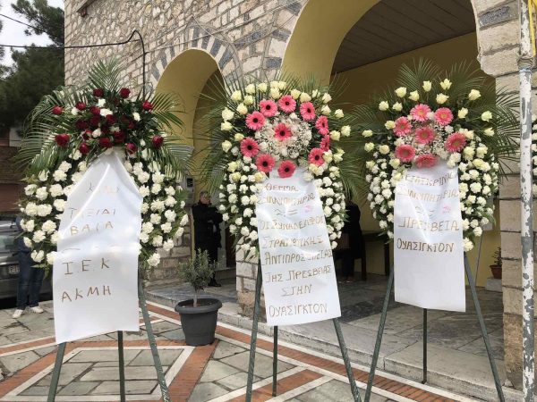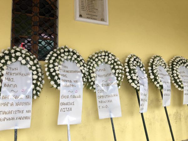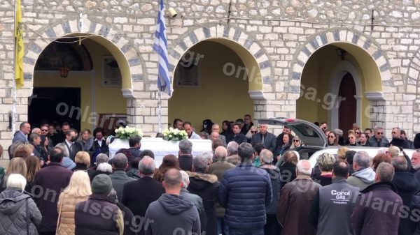 Ο χώρος έξω από την εκκλησία είχε πλημμυρίσει με στεφάνια με λευκά λουλούδια, ενώ λευκό ήταν και το φέρετρο της 42χρονης. Στην εξόδιο ακολουθία χοροστάτησε ο Μητροπολίτης Λαρίσης και Τυρνάβου Ιερώνυμος.