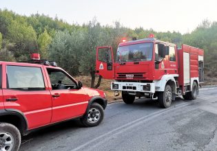 Οι πυροσβέστες συνεχίζουν την κατάσβεση και αυτή την ώρα, ενώ επιχειρούν 15 άτομα με 6 οχήματα.