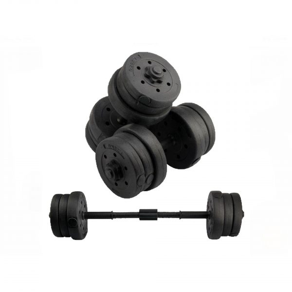 Το Σετ Αλτήρες με Μπάρα Συνολικού Βάρους 20kg είναι ιδανική επιλογή για γυμναστική στο σπίτι, μιας και περιλαμβάνει 19 τεμάχια αλτήρες που μπορούν εύκολα να γίνουν μπάρα και να την αξιοποιήσετε σε διάφορες ασκήσεις, όπως πιέσεις, deadlifts και καθίσματα.