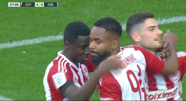 Ο Μπακαμπού ήταν ο σκόρερ του τέταρτου γκολ των πειραιωτών, με τον σέντερ φορ των «ερυθρόλευκων» να ευστοχεί σε πέναλτι στο 58′.