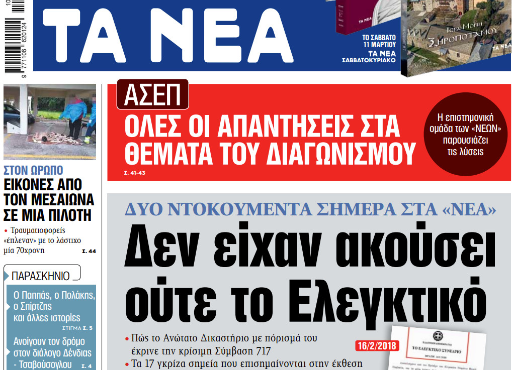 Στα «ΝΕΑ» της Τρίτης: Δεν είχαν ακούσει ούτε το Ελεγκτικό