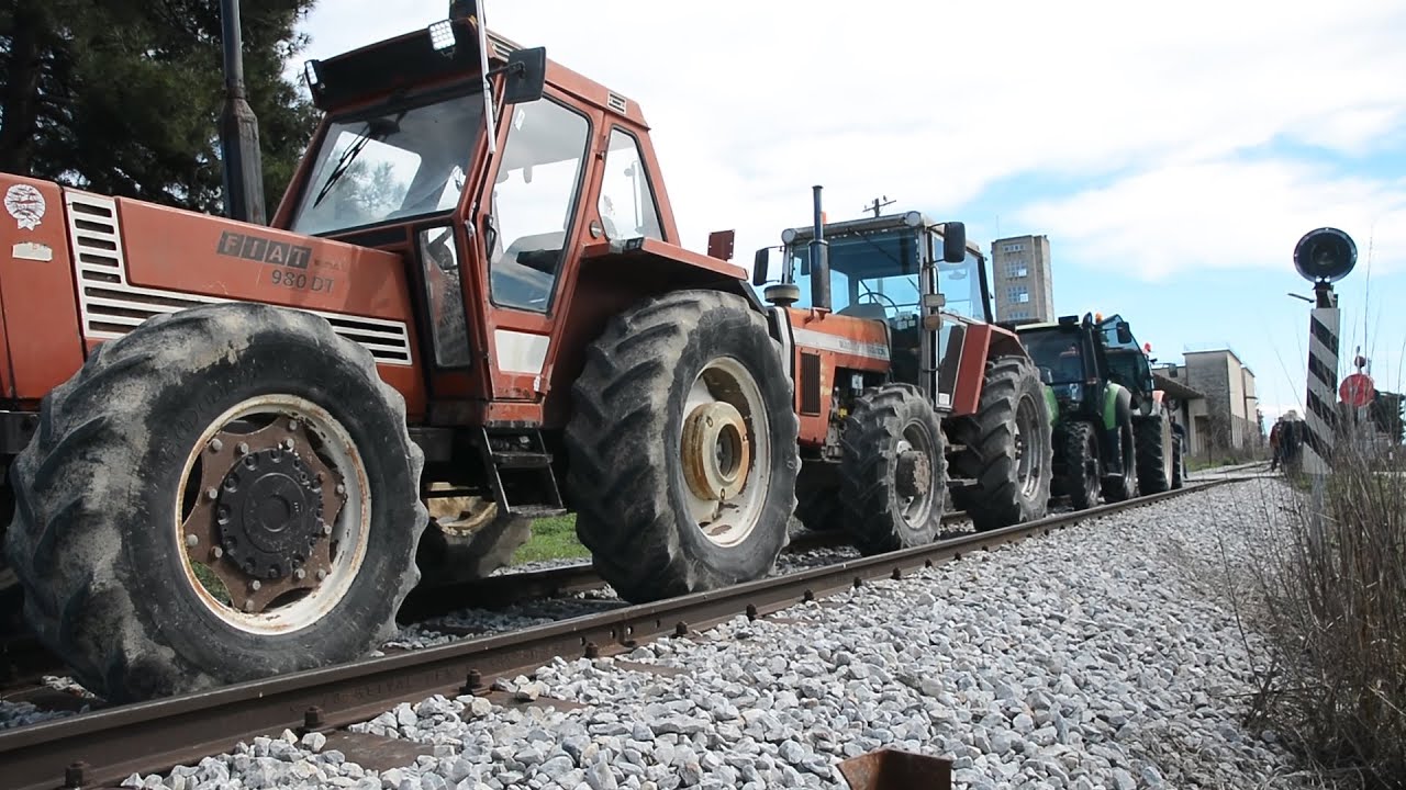 Πάνω στις ράγες οι αγρότες τοποθέτησαν σε ένδειξη διαμαρτυρίας τα τρακτέρ του στο ύψος του Πλατυκάμπου.